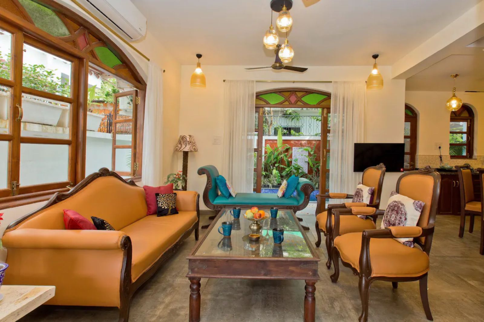 This is a ultra luxury villa located near the iconic Candolim beach in North Goa. This regal villa set among lush green lawns comes fully equipped with 7 en-suite bedrooms, one powder room and a private swimming pool.A pool and a beautiful sit-out area make it the ideal home to spend some quality time with your loved ones. Make this villa you quiet retreat amongst this nightlife hotspot. More