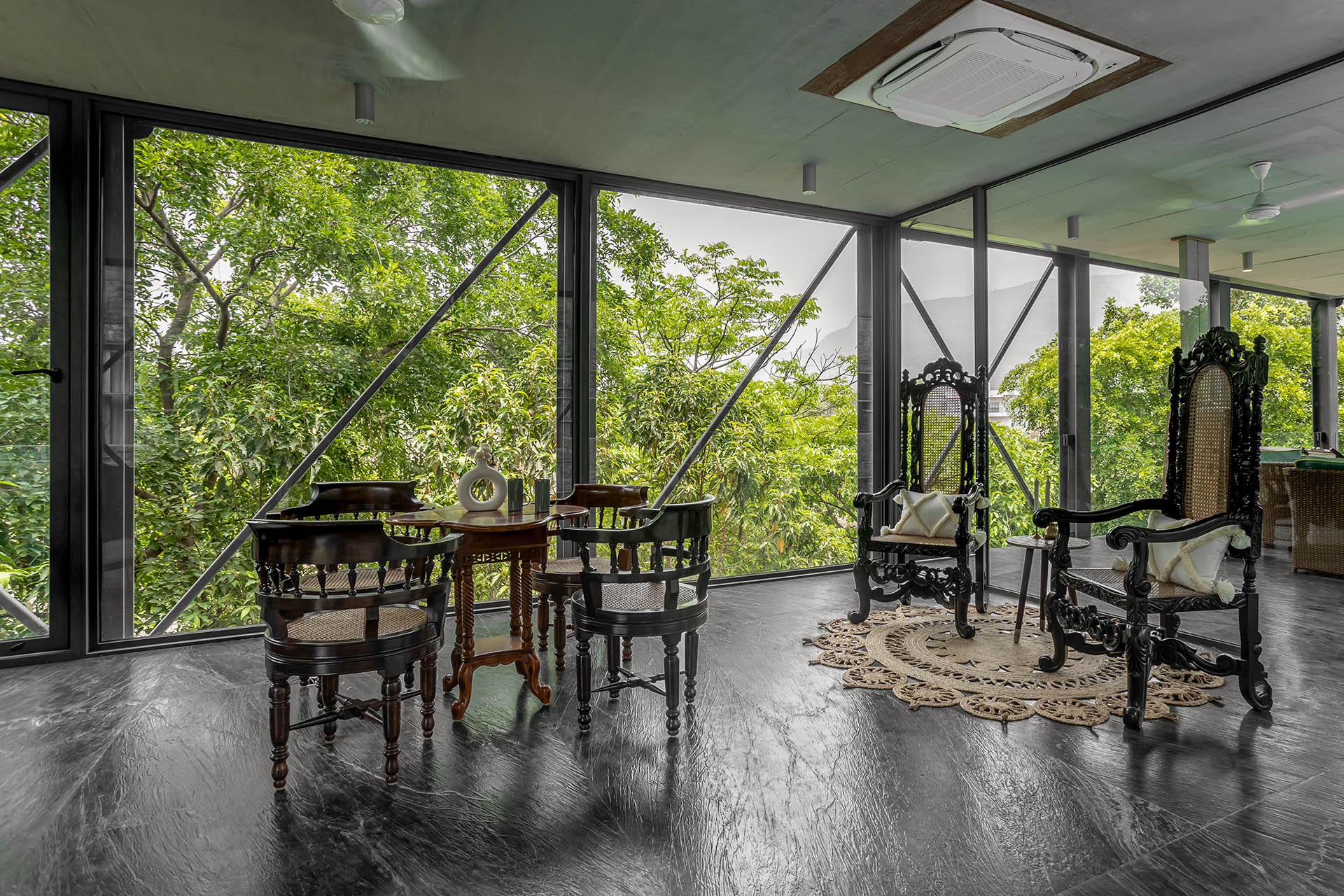 The sound of the gushing river, the soothing rustling of the leaves and the melodious birdsong. Immerse yourself in the wonders of nature at the magnificent LVM 411. The home is split between two wings, connected by a glass-walled bridge that runs over a large private pool. The residential wing comprises four ensuite bedrooms and a TV room. A lift here makes the two-storied wing senior-friendly. More